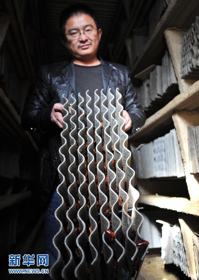 11月7日,在濟南市長清區華魯生態農業園區,山東農民王福明在“蟑螂工廠”內檢查美洲大蠊養殖設備。他目前擁有6家養殖場,大約養殖1000萬只美洲大蠊。蟑螂是一種常見的害蟲,但人工養殖的美洲大蠊(蟑螂的一種)卻是優質的蛋白質原料和藥材,可用于制藥、化妝品制造等行業。山東農民王福明等人抓住市場契機,在農科專家的幫助下建起“蟑螂工廠”,人工養殖美洲大蠊。他們通過不斷摸索與創新,最終研發出美洲大蠊單獨規模化養殖的新技術、新模式。目前在山東已經發展出三四十家美洲大蠊養殖場,一家較大規模的“蟑螂工廠”年產美洲大蠊干量可達20噸,銷售額超過100萬元。新華社記者徐速繪攝