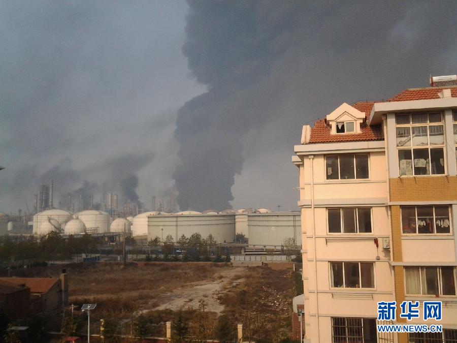 這是11月22日拍攝的爆炸現場(手機拍攝)。當日凌晨3時許,青島市黃島區(qū)中石化黃濰輸油管線一輸油管道發(fā)生破裂事故,造成原油泄漏。上午10時許,在搶修過程中,管道破裂處起火。目前當地政府正組織力量緊急處置。傷亡情況和事故原因正在調查中。新華社發(fā)