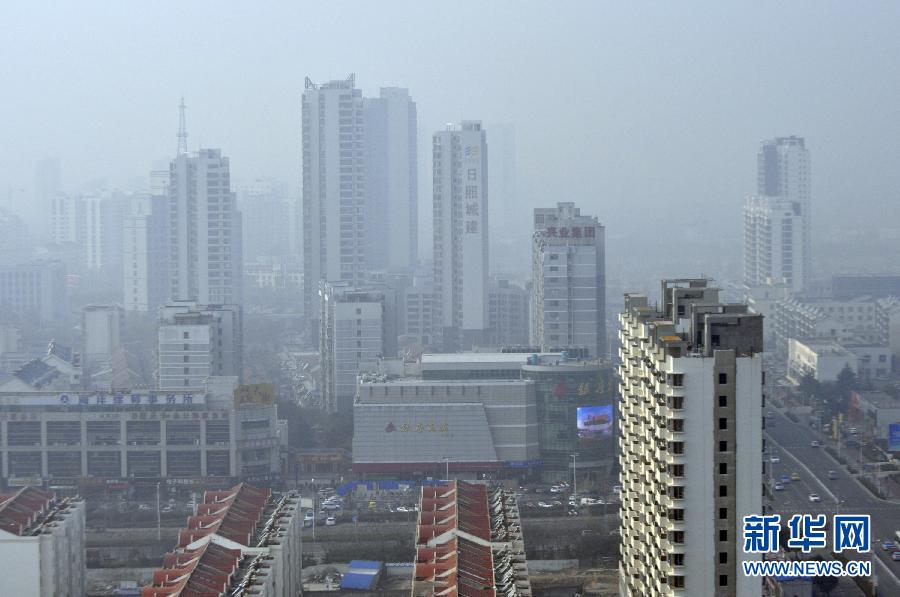 12月3日,山東省日照市新市區建筑群籠罩在霧霾中。山東省氣象臺于12月3日17時繼續發布霾黃色預警信號,預計3日夜間到4日白天,山東省大部分地區中度霾天氣仍將持續。 新華社發(李曉龍攝)