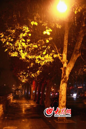 17日晚上,濟南迎來入冬首場降雪。記者 張帆 攝