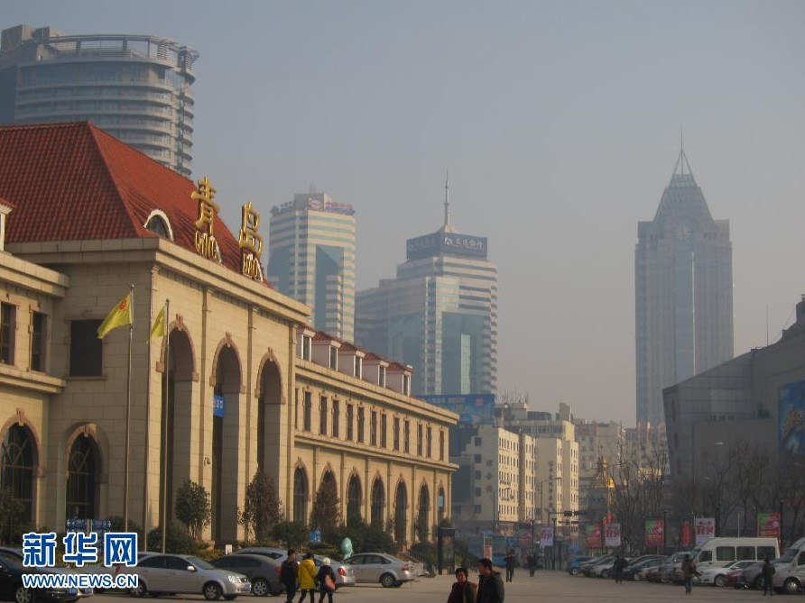 這是12月23日拍攝的青島火車站前街景。當(dāng)日,山東青島遭遇霧霾天氣,整個(gè)城市籠罩在輕霧霾之中。