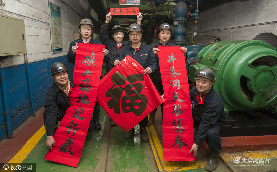 2017年01月23日,山東省濟南市東部的濟鋼鋼城礦業公司-360米礦井內,采礦車間的礦工們張貼對聯、福字,喜迎新春佳節的到來。