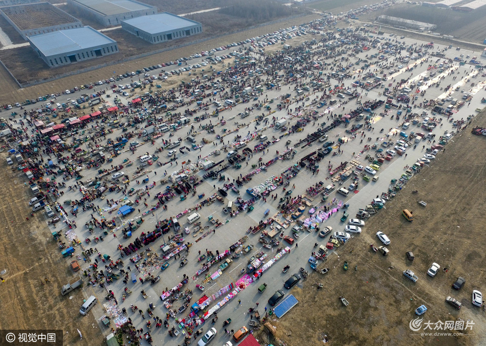 2017年1月24日,農(nóng)歷臘月二十七,春節(jié)的腳步越來越近了,全國(guó)各地鄉(xiāng)村年集人潮涌動(dòng),村民在集市采購(gòu)年貨,喜迎新春佳節(jié)。這是攝影人用無(wú)人機(jī)航拍的山東省惠民縣何坊街道辦事處香翟村年集,近萬(wàn)名當(dāng)?shù)卮迕褛s年集,過大年。