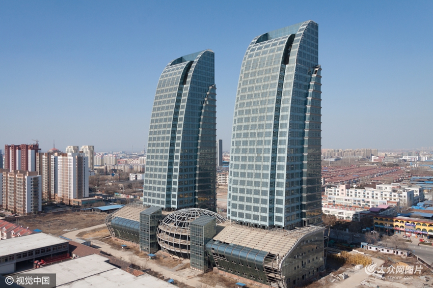 2017年2月10日,山東省臨沂市,通達南路與湖北路交匯處一建筑外觀酷似迪拜帆船酒店。