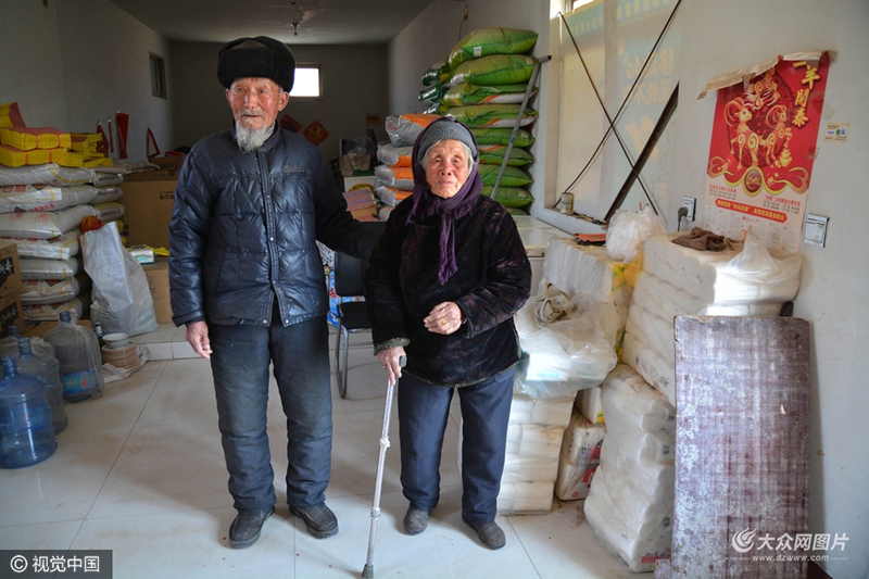 2017年2月12日,山東日照,今年86歲的徐永發(fā)老人和88歲的老伴杜秀蘭,是莒縣龍山鎮(zhèn)徐家阿疃村普通村民。他們自1953年結(jié)婚以來(lái),兩人在大山深處,以種地為生,互相照顧,共同攜手,至今已經(jīng)走過(guò)了63個(gè)春秋。