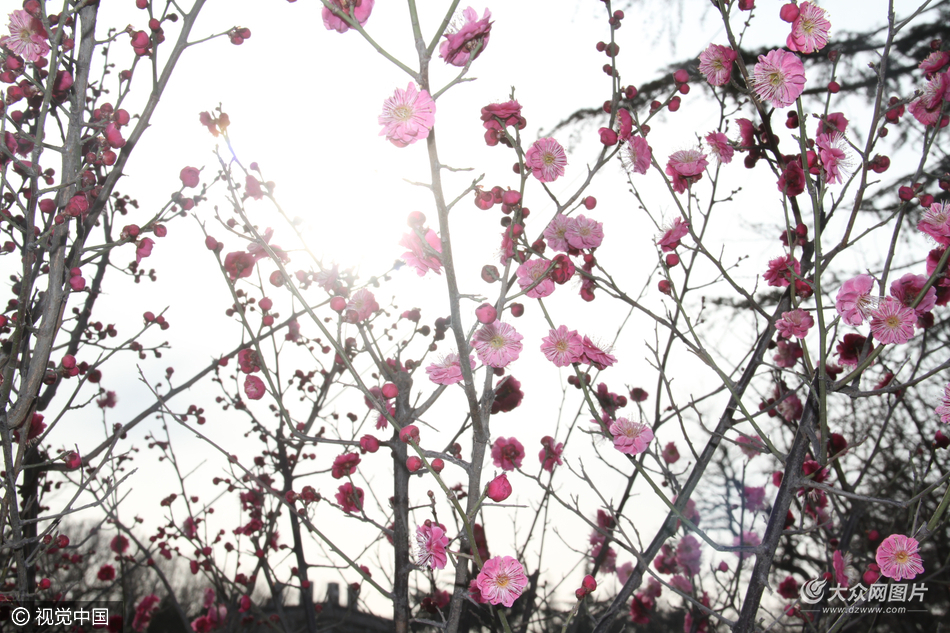 2017年2月20日,在山東濟南山東大學醫學院內,大批梅花競相綻放,吸引大批攝影愛好者聚集扎堆抓拍春天的氣息。由于此處,加上近日天氣有些反常,梅花開花較早。圖片作者:陳寧/視覺中國