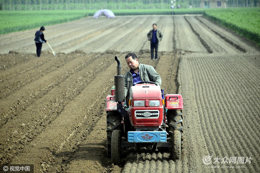 2017年5月4日,山東省聊城市茌平縣肖莊鎮田莊村的村民在田間勞作。立夏節氣將至,各地農民搶抓農時,忙著進行田間管護、夏收夏種,農事生產進入繁忙時節。