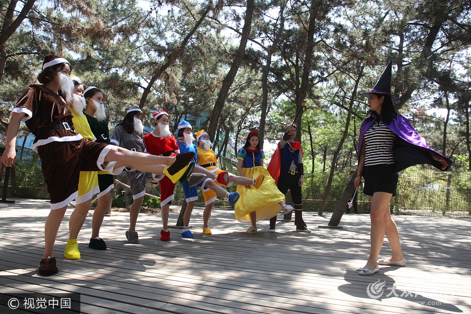 2017年5月21日,山東煙臺,又到一年畢業(yè)季,山東魯東大學外語系學生們在一所夢幻海森林樂園穿著學士服拍攝畢業(yè)照,同時拍攝“森林童話”主題另類畢業(yè)照,演繹白雪公主與七個小矮人的故事,向即將逝去的青春告別。