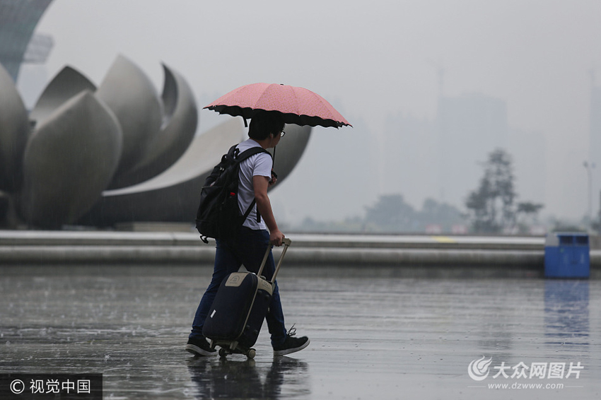 6月22日上午,濟南迎來一場降雨過程,在濟南西客站東出站口處,有些旅客在出站口欣賞雨天濟南拍攝雨天濟南發朋友圈、有些旅客奔跑在雨中打車,甚至旅客坐在地上看手機感受雨天所帶來清爽感覺。