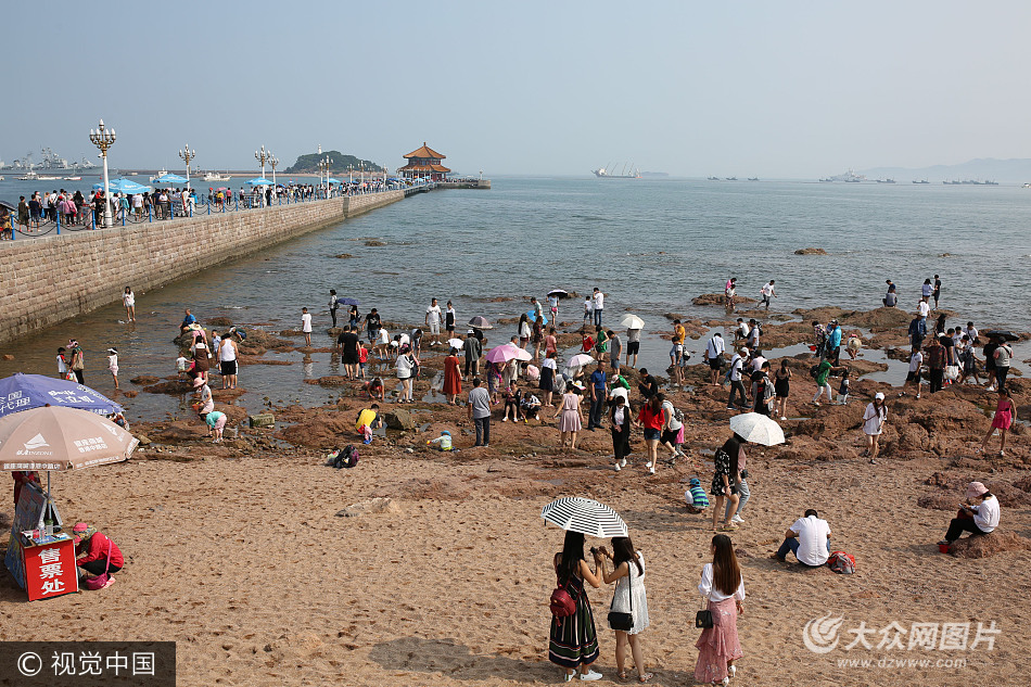 2017年6月26日,游人在青島棧橋景區游玩。今年青島旅游旺季提前到來,海濱各大景區天天人流如織,各酒店也開始執行旺季價格,預訂量節節攀升。目前全國大部分城市酷熱難耐,而青島卻是涼爽依舊,各地中高考都結束,學生游、家庭游異常火爆,紛紛擁到青島海濱避暑休閑,享受20多度的涼爽天。