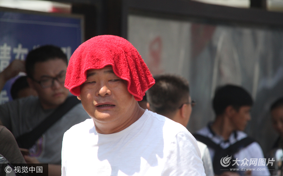 2017年7月13日,濟南持續高溫天氣,旅客上演“防曬眾生相”。