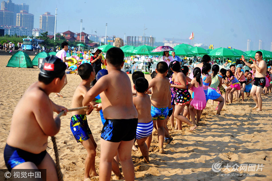 2017年7月13日,山東青島8大海水浴場(chǎng),30萬(wàn)左右的國(guó)內(nèi)外游客來(lái)到海邊和沙灘,與海水親密接觸,享受海水帶來(lái)的清涼。連日來(lái),我國(guó)北方多地出現(xiàn)持續(xù)高溫,青島豐富的海水浴場(chǎng)和清涼的海水成為游客盛夏季節(jié)避暑游的首選之地。