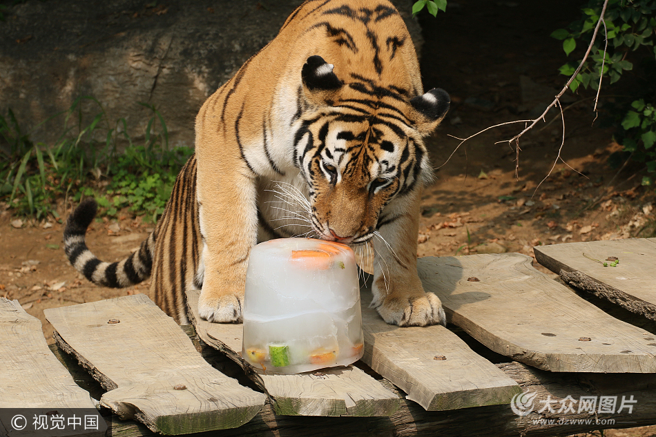 組照說明:2017年7月22日是二十四節氣中的大暑,又恰逢“三伏天”里的“中伏”首日,山東煙臺迎來高溫天氣,煙臺動物園為一些不耐高溫的動物準備了凍有水果的冰塊,幫助動物們解暑降溫。