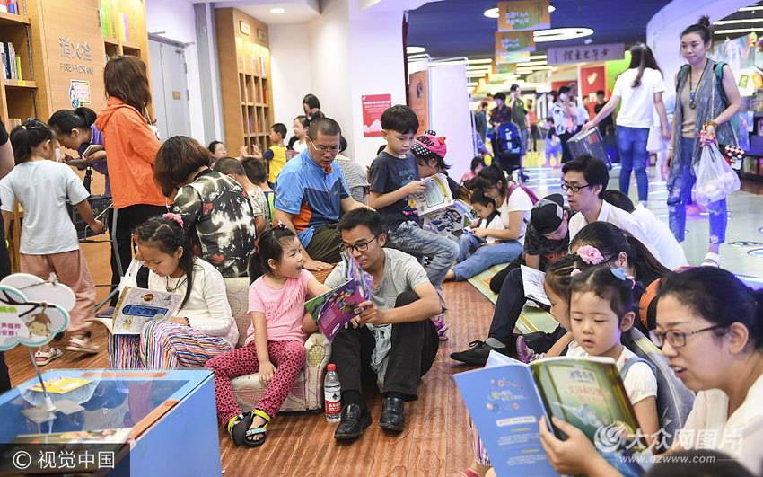 7月30日,濟南家長帶寶寶選書、讀書。當日,“齊魯書香節暨山東書展”引爆民眾購書狂潮,許多民眾前往濟南主會場飽覽群書,選購書籍。