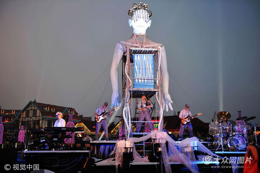 8月6日,青島金沙灘啤酒城,法國樂隊在廣場演奏法國音樂。