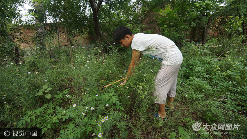 8月4日,山東德州。割草的這個男孩名叫王延良,今年16歲的王延良剛剛以544分成績考取了禹城第三中學。王延良的父母相信知識改變命運,只要努力學習一定會改變這個家庭的貧困。王延良的父親在2012年因腦出血失去了勞動能力,全家僅靠他的母親梁桂榮打零工撿垃圾維持生計。不幸的是他的母親在2017年5月因車禍導致無法下床,因對方車輛無保險家庭條件不佳僅賠償了2萬元的手術費。現梁桂榮腿內打著鋼板后期愈合后拆鋼板的費用還沒有著落。