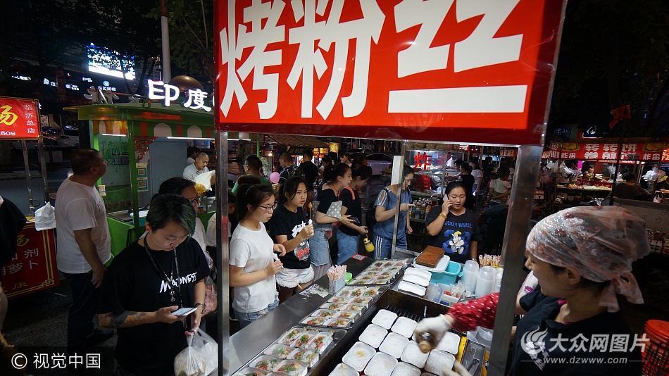 夜幕降臨位于臨沂市蘭田步行街的夜市熱鬧起來,小吃是夜市主要一個吸引人的部份。這位90后妹子張琴成為了該夜市小吃界的佼佼者,一輛餐車一部手機讓她每天忙的不亦樂乎。張琴和老公李超經營的是烤粉絲生意,他們的顧客大多是張琴這位“粉絲西施”的老鐵,看張琴直播后實地來體驗烤粉絲的。圖片作者:子恒/視覺中國