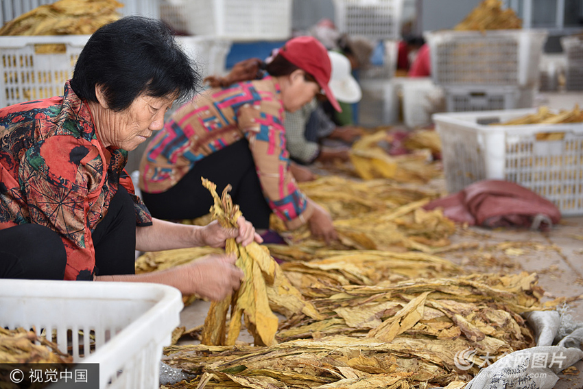 在整個黃煙收獲期,農村婦女是主要的勞動力。她們不抽煙,但是卻掙著“煙錢”,為了多掙一分,她們還得搶著干才行。
