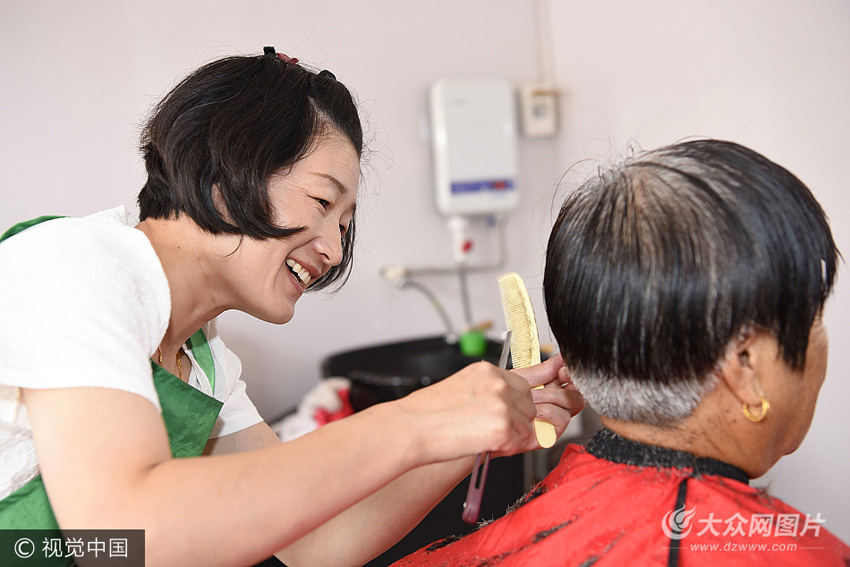 每隔40天左右,理發師冷潔就會如約來到幸福源,免費為老人們服務,村委按照冷潔的工作量,付給相應的勞務費。