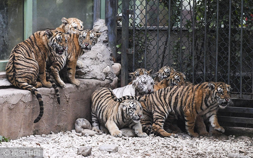 10月17日,濟南野生動物世界今年誕生的12只小老虎集中亮相,霸氣模樣吸引許多游客駐足觀賞。據悉,濟南野生動物園今年共繁育成活26只小老虎,其中2只是“虎中極品”金虎。