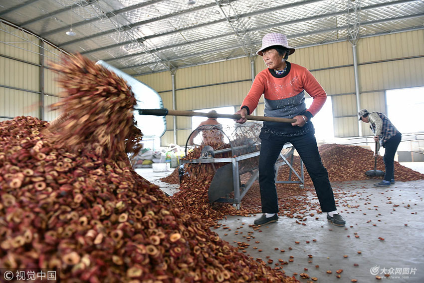 “俺在這里切山楂片,年齡大了干得慢,一天也能掙80多塊錢(qián),年輕會(huì)干,手把利索的一天都掙120多塊錢(qián)。”今年63歲李奶奶介紹說(shuō),她孫子上學(xué),也不用看了,來(lái)這里打工掙錢(qián),同時(shí)也能在孫子放學(xué)后照顧孫子,非常方便。