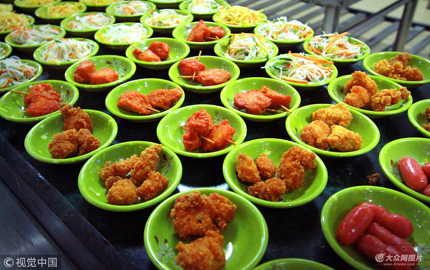 該餐廳的“一元窗口”于10天前正式開業,所推出的菜品雖說量不大,但品種較多,每天至少有10種精美小炒和涼菜供同學們隨意挑選。不僅如此,每隔2到3天,菜品花樣就會更新。“不光便宜,還很豐富。隨便花幾塊錢,就能找到吃大餐的感覺!毕挛5點半,一名早早來到餐廳吃飯的男生,對餐廳新設置的“一元窗口”贊不絕口!耙话闱闆r下,男生最多買5樣菜就足夠了,而且有菜有肉,再加上米飯也就不到6塊錢。女生的話就更省了,估計3塊錢就能吃飽!