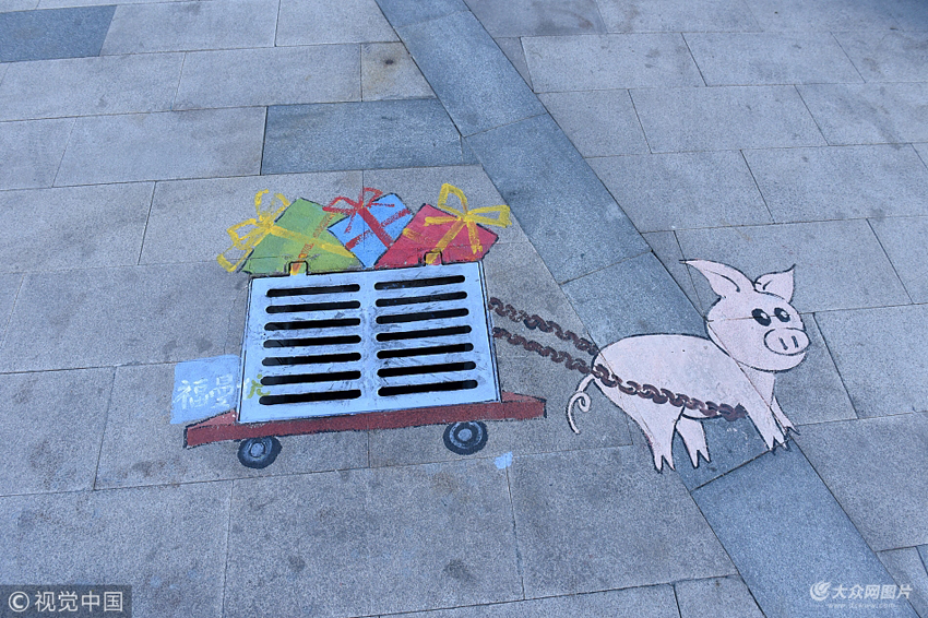 11月23日,在濟南和平路一商場周邊的許多井蓋被創(chuàng)意涂鴉,橫行的螃蟹、拉車的小豬、吃蘿卜的小兔子等形象一一亮相,為城市增添了不少色彩。據(jù)了解,這些涂鴉是附近一家藝術(shù)學(xué)校里的幾名老師畫的,他們用丙烯為顏料進行創(chuàng)作,讓過往的路人賞心悅目。