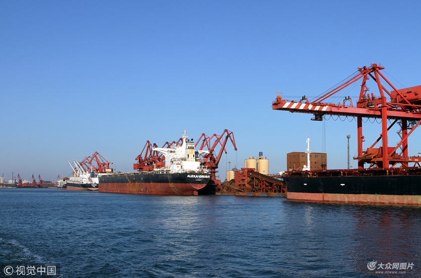 2017年12月1日,山東日照港繁忙的礦石碼頭,多條開(kāi)普型巨輪正在卸礦石。