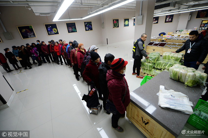 12月16日,濟南市,在緯十二路地下二層的人防商城,占地2000平方米的便民菜市場開始營業,50多個營業攤位銷售新鮮的蔬菜、肉制品、海鮮、面食和水果,貨架全部統一樣式,商販全部統一著裝,市民可以一站式購買全各種果蔬副食。據了解,這是濟南首個利用地下人防商業街開設的菜市場,地下一層經營各種時尚服飾和餐飲,地上一層與BRT站臺相同,市民購物買菜交通便利。為吸引更多市民前來購買蔬菜,商場每天分四個時段免費贈送白菜,全天贈送白菜1200多顆,總重達到5000多斤,吸引眾多老人前來領取,每人限領一顆,每顆白菜售價2元左右。