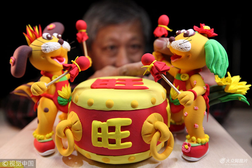 棗莊:萌萌噠 61歲民間藝人面塑“生肖”迎新年 (/7)