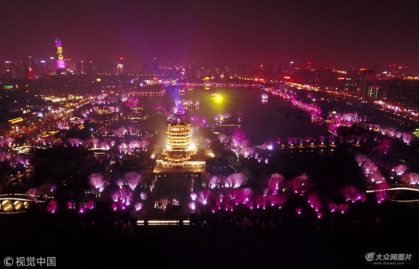 濟(jì)南大明湖千萬(wàn)盞彩燈全面點(diǎn)亮 景區(qū)猶如夢(mèng)境 (/7)