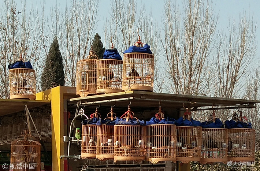 2017年12月31日,山東聊城,鳥籠高低錯落有致、整齊美觀。