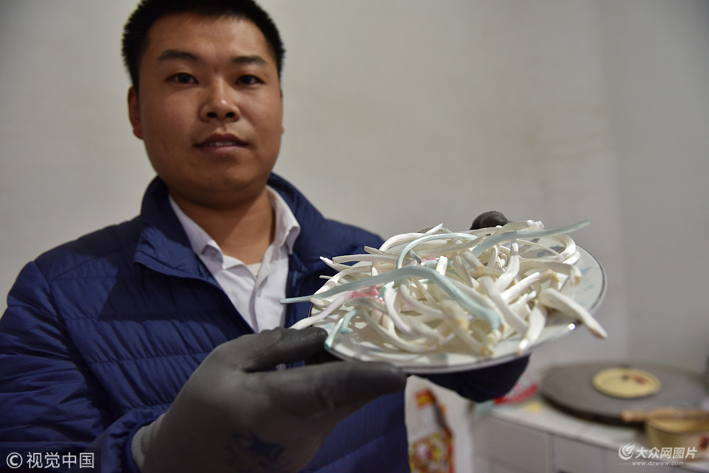 1月2日,在山東省日照市莒縣劉官莊鎮公婆山村,莊新弟正在展示“清涼糖”。