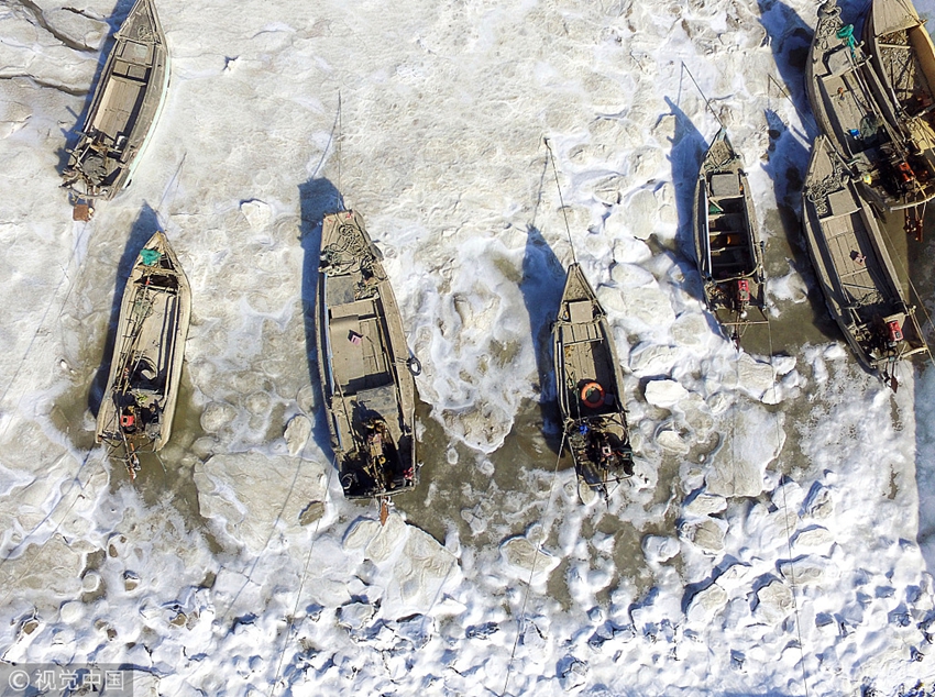 2018年1月24日,青島, 隨著近日氣溫不斷降低,膠州灣海冰面積逐日增大。