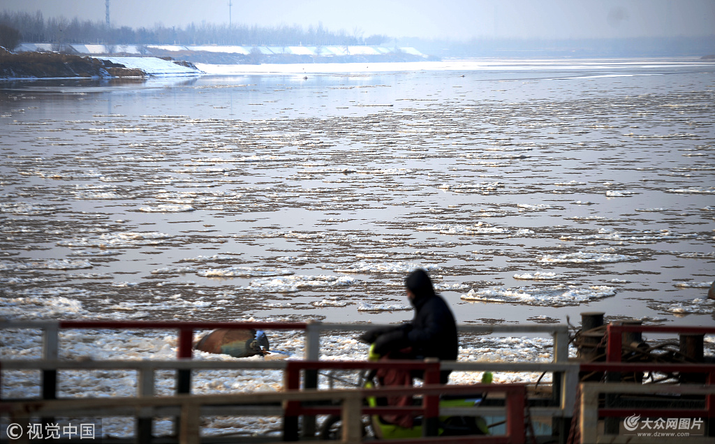 組照說明:2018年1月29日,山東省濟南市,受持續低溫天氣影響,黃河濟南段出現今年第二次淌凌,在濟南建邦黃河大橋至濼口浮橋之間,數公里長的河道內漂浮著大量冰凌,冰塊面積最大的10多個平方米,厚度超過2厘米,浩浩蕩蕩的隨著水流向下游飄去,淌凌密度早20%左右。隨著氣溫的逐漸回升,預計30日開始最高氣溫升至0℃以上,淌凌密度將呈下降趨勢。