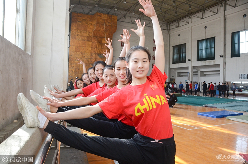 2018年2月8日,在山東聊城一家藝考培訓(xùn)中心,高三學(xué)生正在進行壓腿訓(xùn)練。
