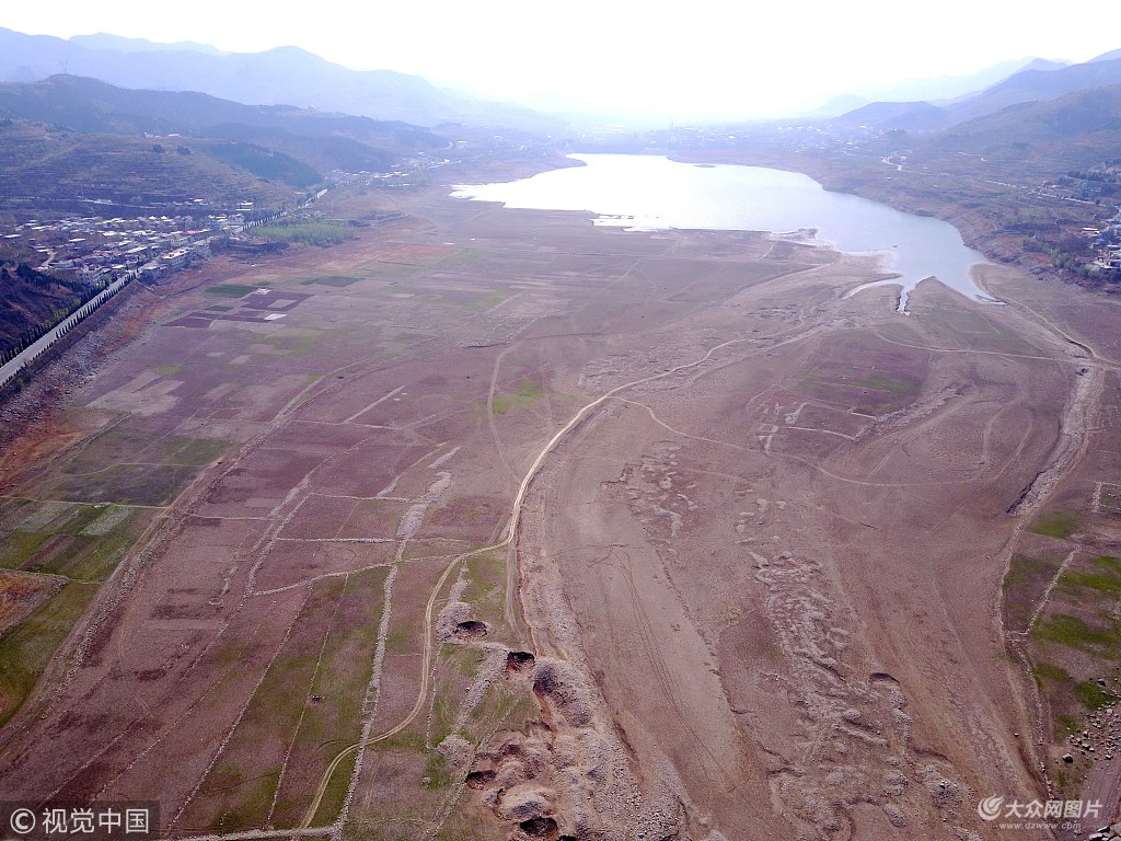 2018年4月8日,濟南南郊重要的飲用水源地-錦繡川水庫庫底大面積暴露,甚至幾十年前淹沒的老村莊也已經露出。