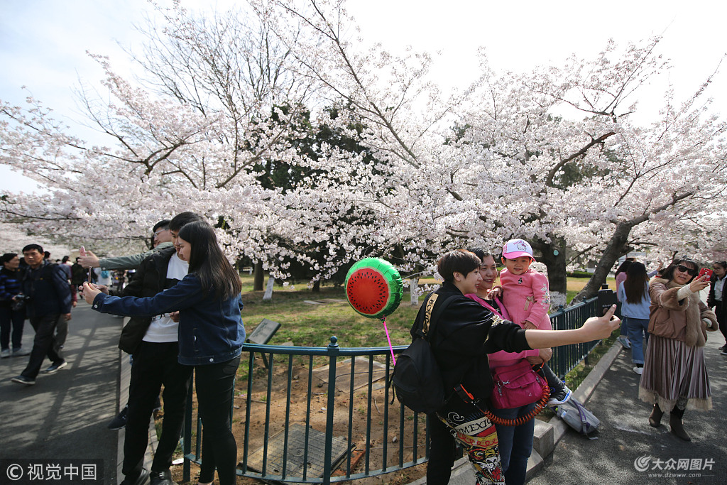2018年4月11日,游人在青島中山公園賞櫻花。近日青島連續升溫,中山公園櫻花全面開放,吸引許多人前來賞櫻拍照游園,春意盎然。
