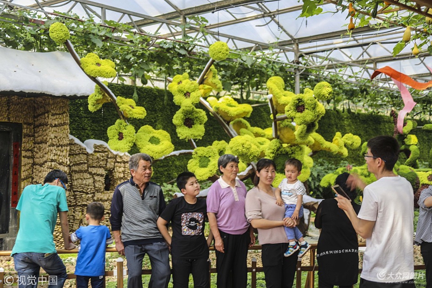 2018年4月29日,山東濰坊,第十九屆山東壽光菜博會上人頭攢動,人們被本屆菜博會上的青蔬流翠、菜果飄香和特色景觀所陶醉。