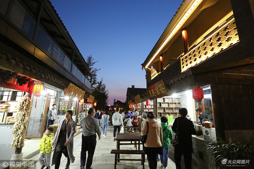 2018年5月2日,在山東省日照市東夷小鎮,游客品嘗八方美食,體驗民俗文化,感受著小鎮獨特的都市生活。