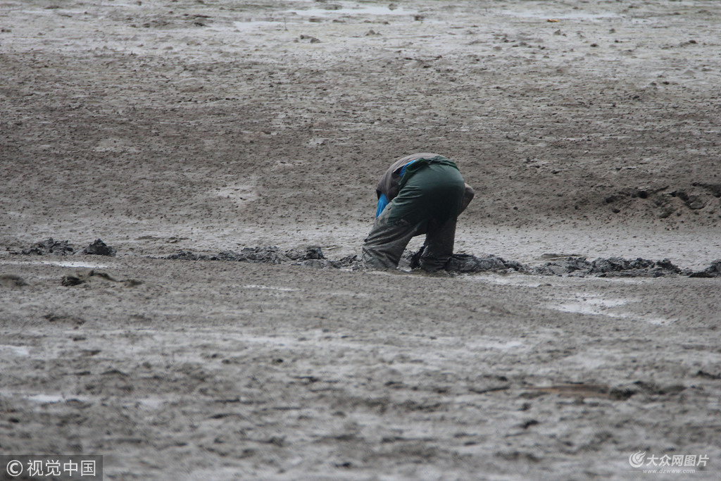2018年5月6日,市民在青島膠州灣河口挖縊蟶。圖片作者:黃杰顯/視覺中國(guó)