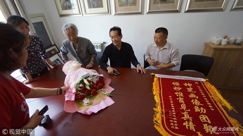 2018年5月13日,濟南,成都尋女24載的王明清(右)沒有想到,一幅模擬畫像的出現(xiàn),讓他終于沖破時空的阻隔,與女兒王啟鳳實現(xiàn)團圓。