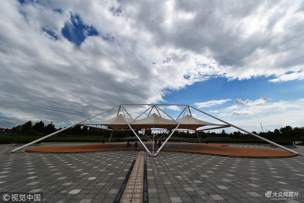2018年8月15日 ,山東濱州。臺風“摩羯”過境之后,山東濱州迎來晴好天氣,湛藍的天空飄著朵朵白云,如畫卷一般美麗。