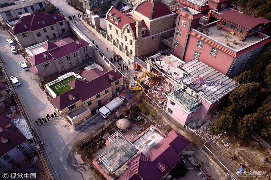 2019年1月10日上午,濟南著名的金雞嶺別墅區,市中區執法人員和工程機械進入現場拆除非法別墅。