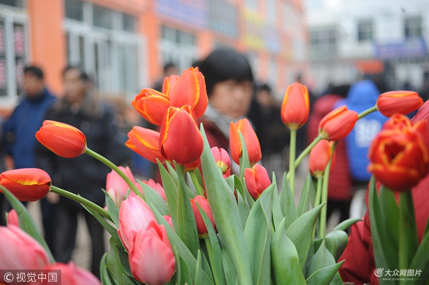2019年1月19日,市民在煙臺市芝罘區祥和花鳥市場選購鮮花。