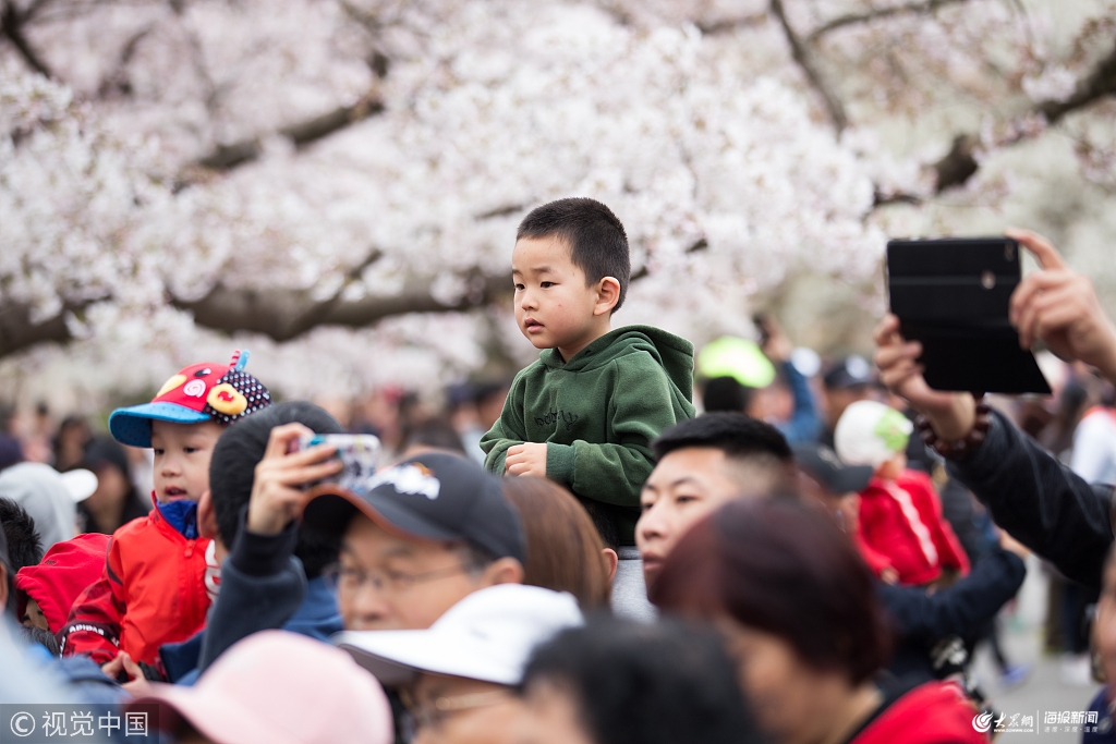 2019年4月7日,清明節小長假最后一天,青島中山公園內櫻花盛開,吸引游客涌入賞花踏青。