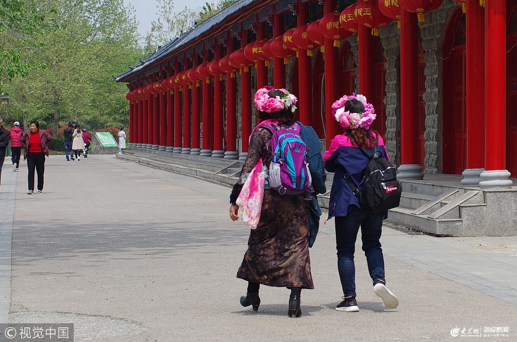 2019年4月10日,山東省菏澤市曹州牡丹園,人們?cè)谟螆@賞牡丹。