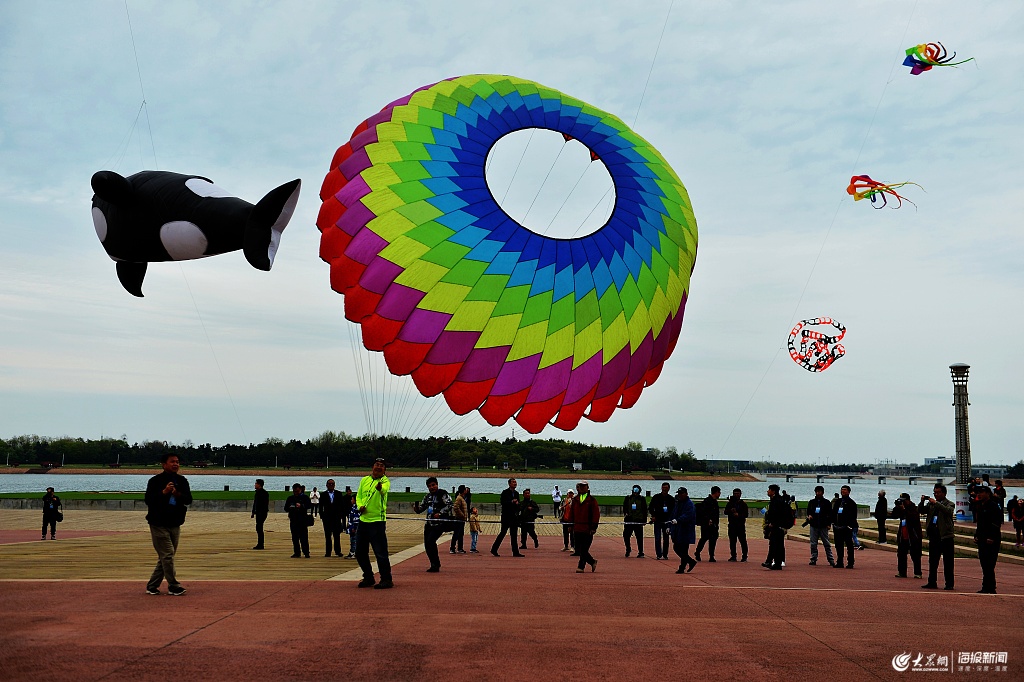 2019年4月27日,游客在山東日照太陽廣場觀看風箏表演。圖片作者:王海濱/視覺中國
