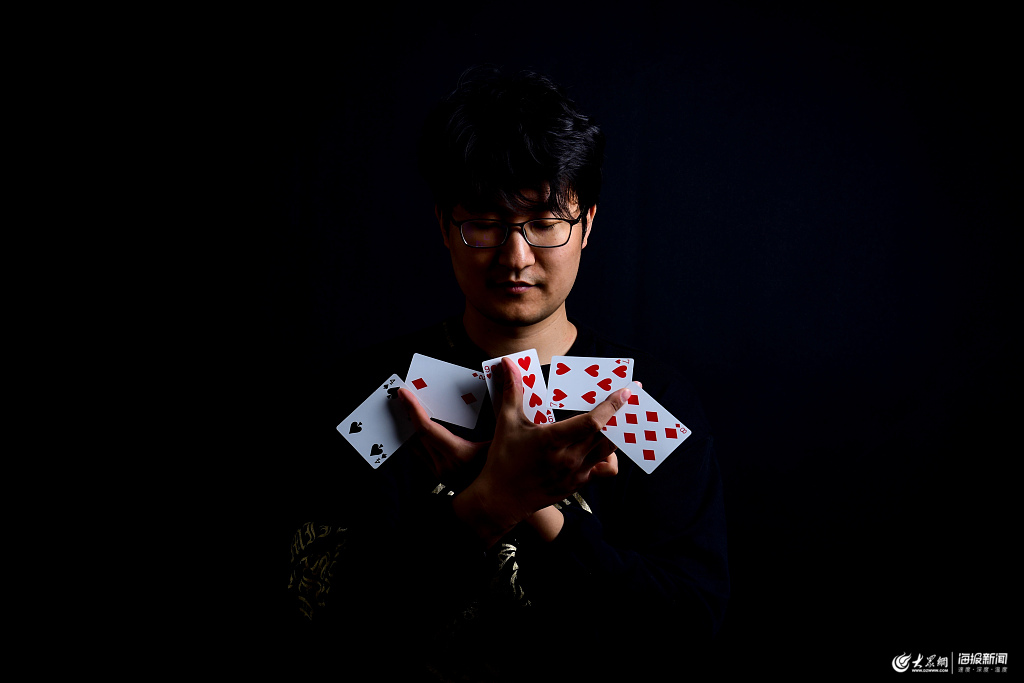 2019年04月17日,山東省青島市,張丞潤(rùn)目前研究生在讀,即將前往澳大利亞攻讀博士,是一位不折不扣的“學(xué)霸”。除了“學(xué)霸”的身份,他還是一位魔術(shù)師,自學(xué)魔術(shù)10年,擅長(zhǎng)花式紙牌,大學(xué)的時(shí)候就拿下了全國(guó)魔術(shù)精英挑戰(zhàn)賽金獎(jiǎng)。張丞潤(rùn)希望有朝一日能拍一部中國(guó)版的《驚天魔盜團(tuán)》,并在影片中融入中國(guó)元素,讓中國(guó)魔術(shù)走向世界。