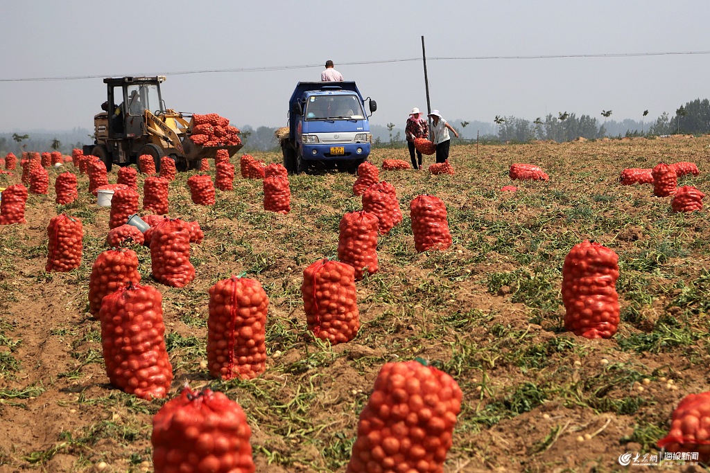 2019年7月5日,在山東省青島西海岸新區六汪鎮孔家莊村,農民在田間收獲大西洋土豆。